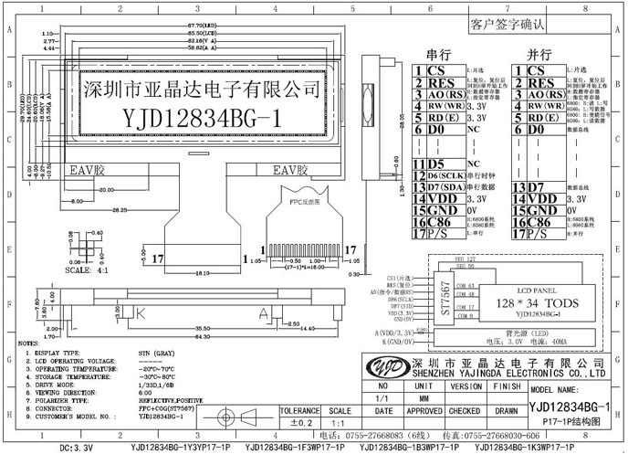 产品型号:YJD12834BG-1F3WP17-1P